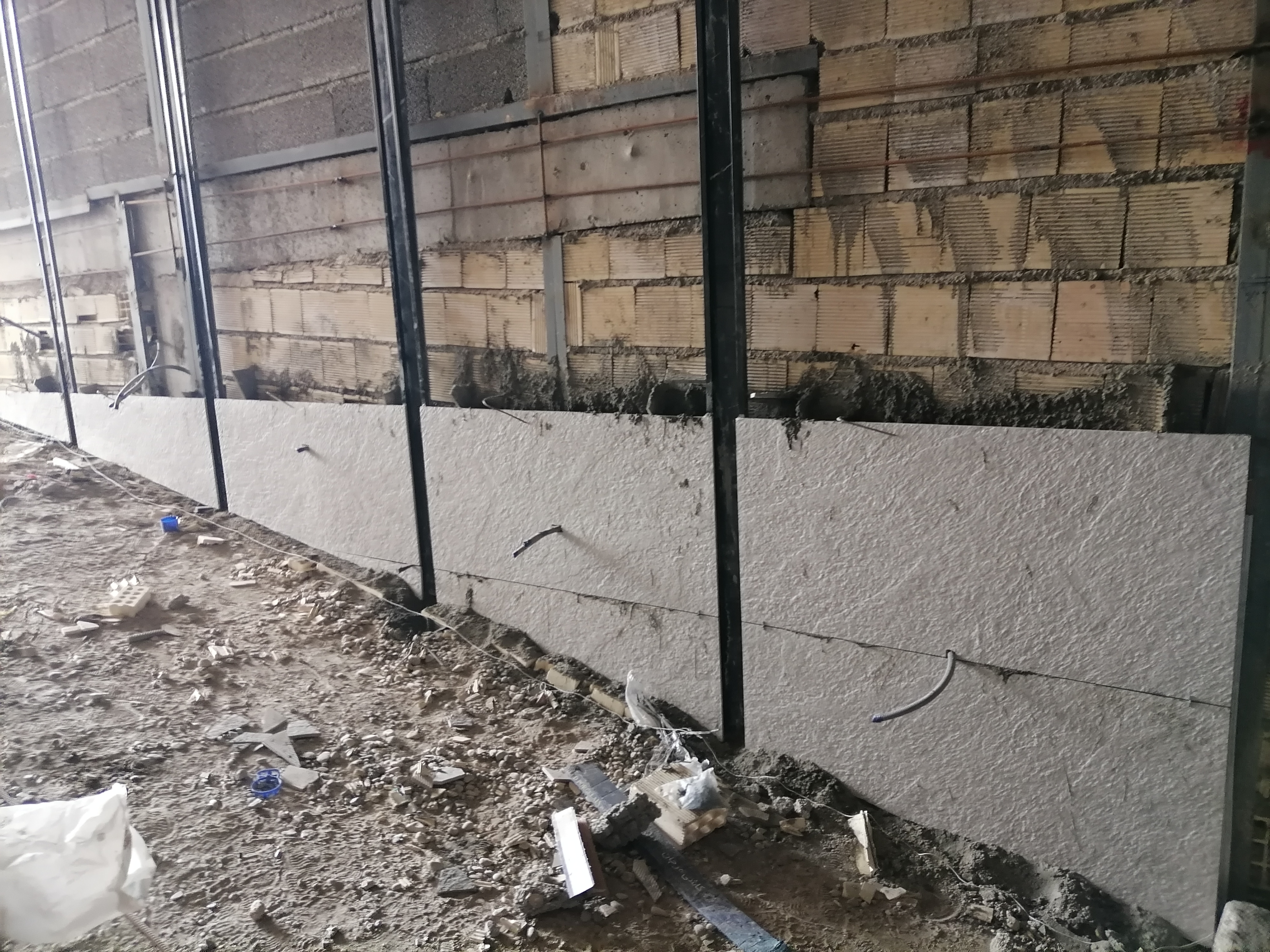 پروژه پارتیکا 2 بدنه پارکینگ با سرامیک درجه دو با دو رنگ تیره و روشن به همراه فارسی بری و طرح تو و بیرون در بعضی از دیوارها و استفاده از مایع بتن و اسکوپ دکمه ای با چسب سنگ